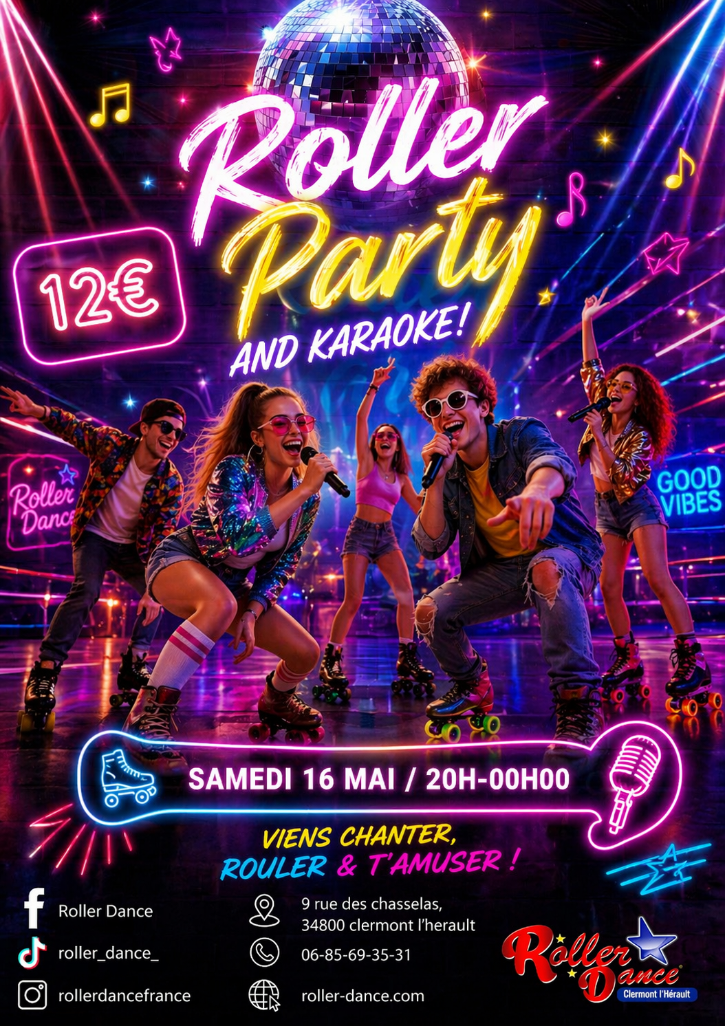 Le Roller Dance de Clermont-l’Hérault vous donne rendez-vous le samedi 16 mai pour une soirée festive mêlant roller, musique et karaoké. Une ambiance dynamique et conviviale vous attend pour partager un moment unique sur la piste.